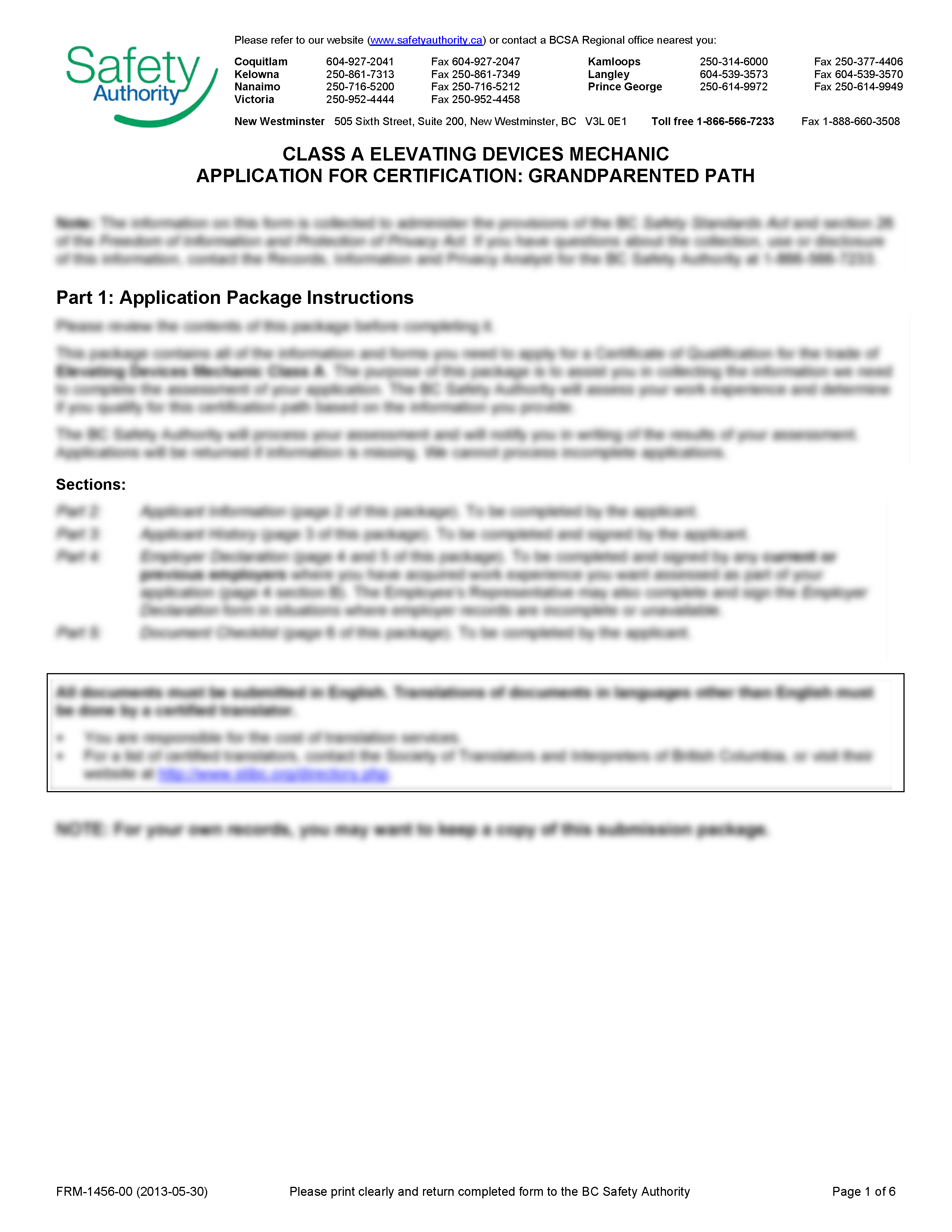 Class A ED Mechanic Application for Certification – Grandparented Path (FRM-1456-00)